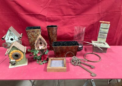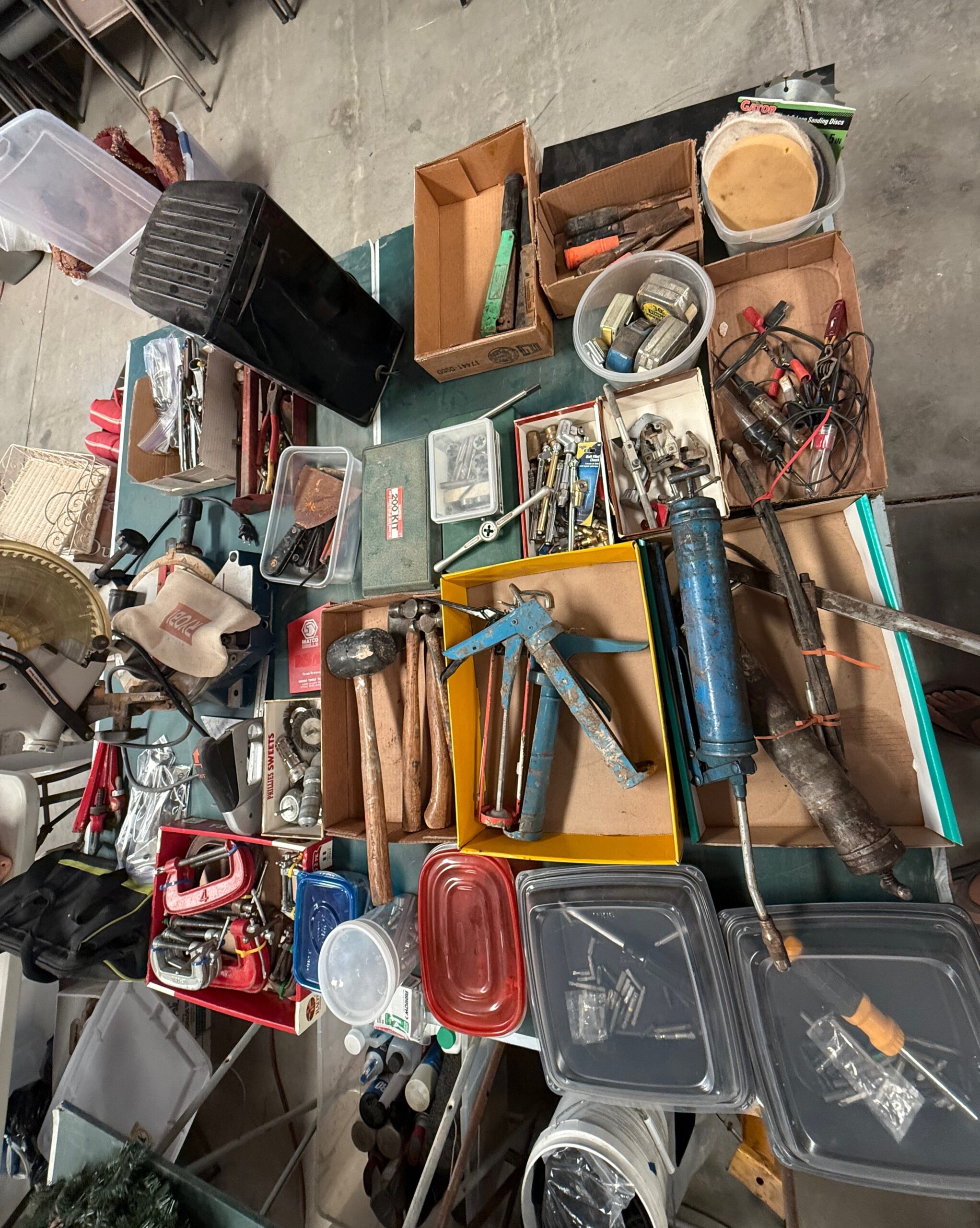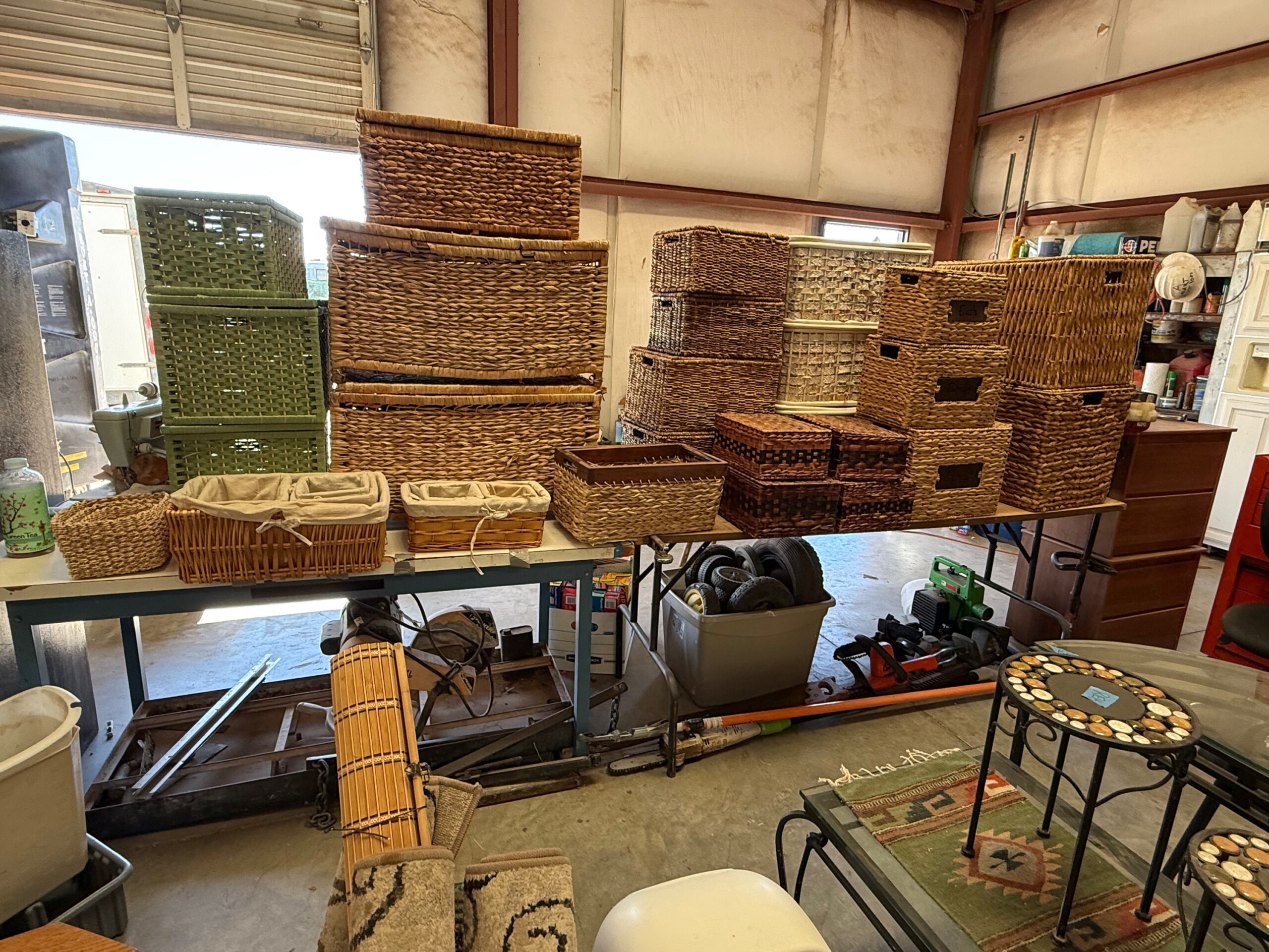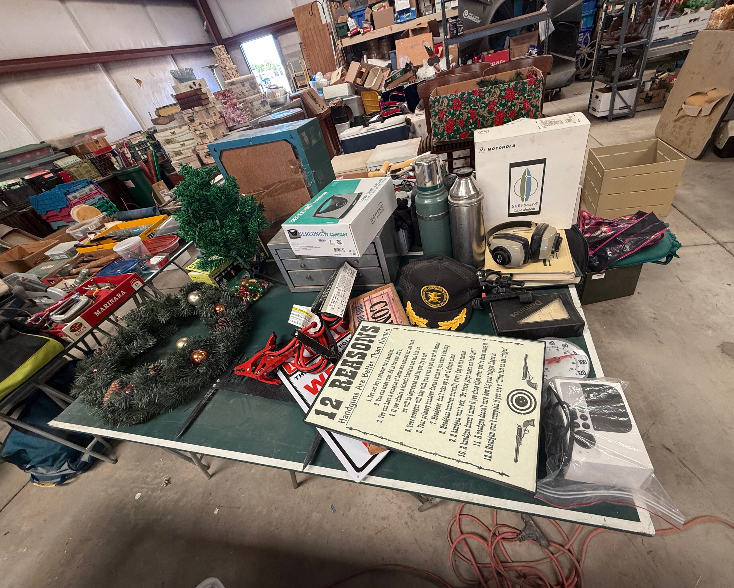 PARTIAL LIST: Gold, Silver & fashion jewelry, Beatles record albums and other records’s, Conan comic book collection, antique cast iron school bell, Baseball memorabilia, collectible Packard Motor Car wall thermometer & clock, Kachinas, knives, Snap On tool box, hand & power tools, John Deere JX75 lawn mower, Vintage surveying transit with wooden tripod, Barbie collectible display case, BBQ grill, (2) 18 speed Shimano Power Climber bicycles, Centurion gun safe, Fall & Christmas décor, wicker baskets, hat boxes, (3) flat panel TV’s, (2) air compressors, Metal Wall décor, collectible glassware, Ninja air fryer, Milkshake Maker, glass top wrought iron tables, kitchenware, books, clothes, Moroccan lantern, Kitchen & bath towels, bedding, outdoor rugs, silk arrangements, ice chests and Many More Items to Auction…