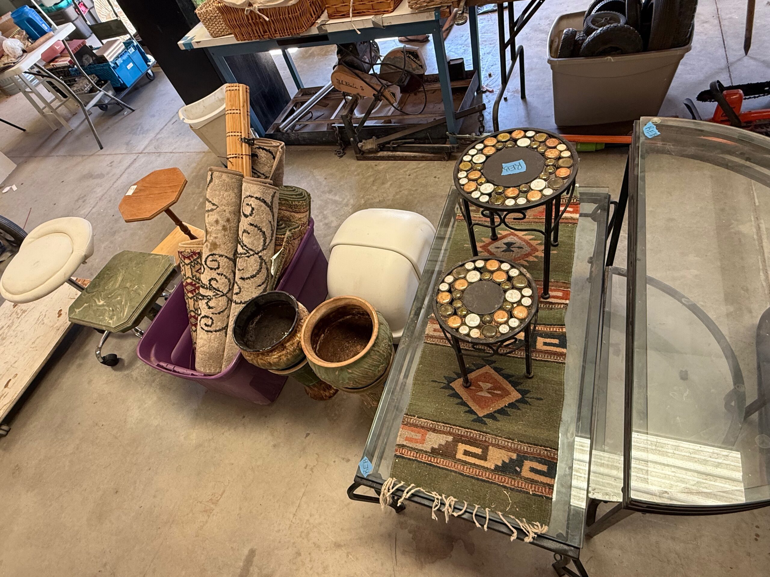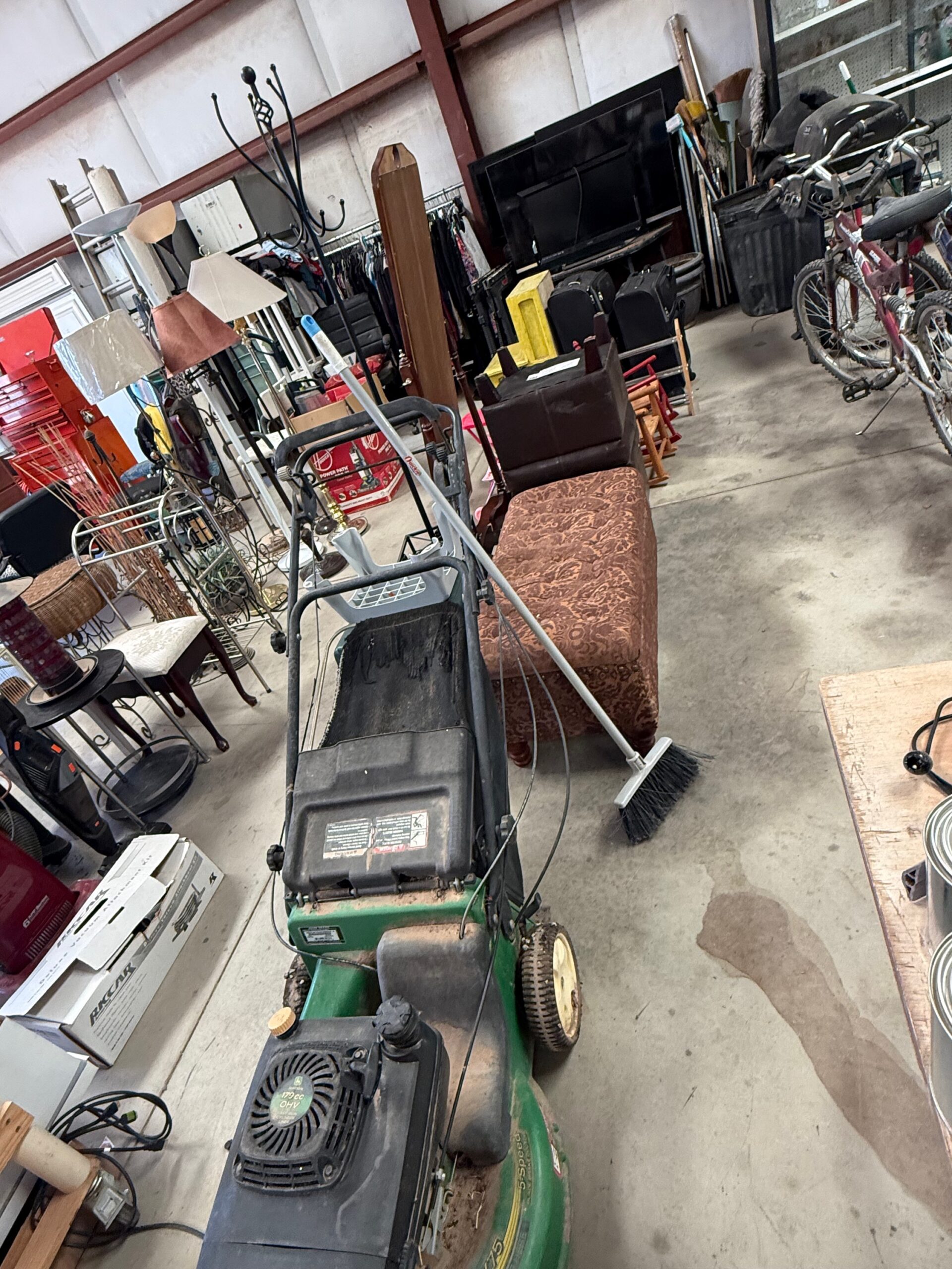 PARTIAL LIST: Gold, Silver & fashion jewelry, Beatles record albums and other records’s, Conan comic book collection, antique cast iron school bell, Baseball memorabilia, collectible Packard Motor Car wall thermometer & clock, Kachinas, knives, Snap On tool box, hand & power tools, John Deere JX75 lawn mower, Vintage surveying transit with wooden tripod, Barbie collectible display case, BBQ grill, (2) 18 speed Shimano Power Climber bicycles, Centurion gun safe, Fall & Christmas décor, wicker baskets, hat boxes, (3) flat panel TV’s, (2) air compressors, Metal Wall décor, collectible glassware, Ninja air fryer, Milkshake Maker, glass top wrought iron tables, kitchenware, books, clothes, Moroccan lantern, Kitchen & bath towels, bedding, outdoor rugs, silk arrangements, ice chests and Many More Items to Auction…