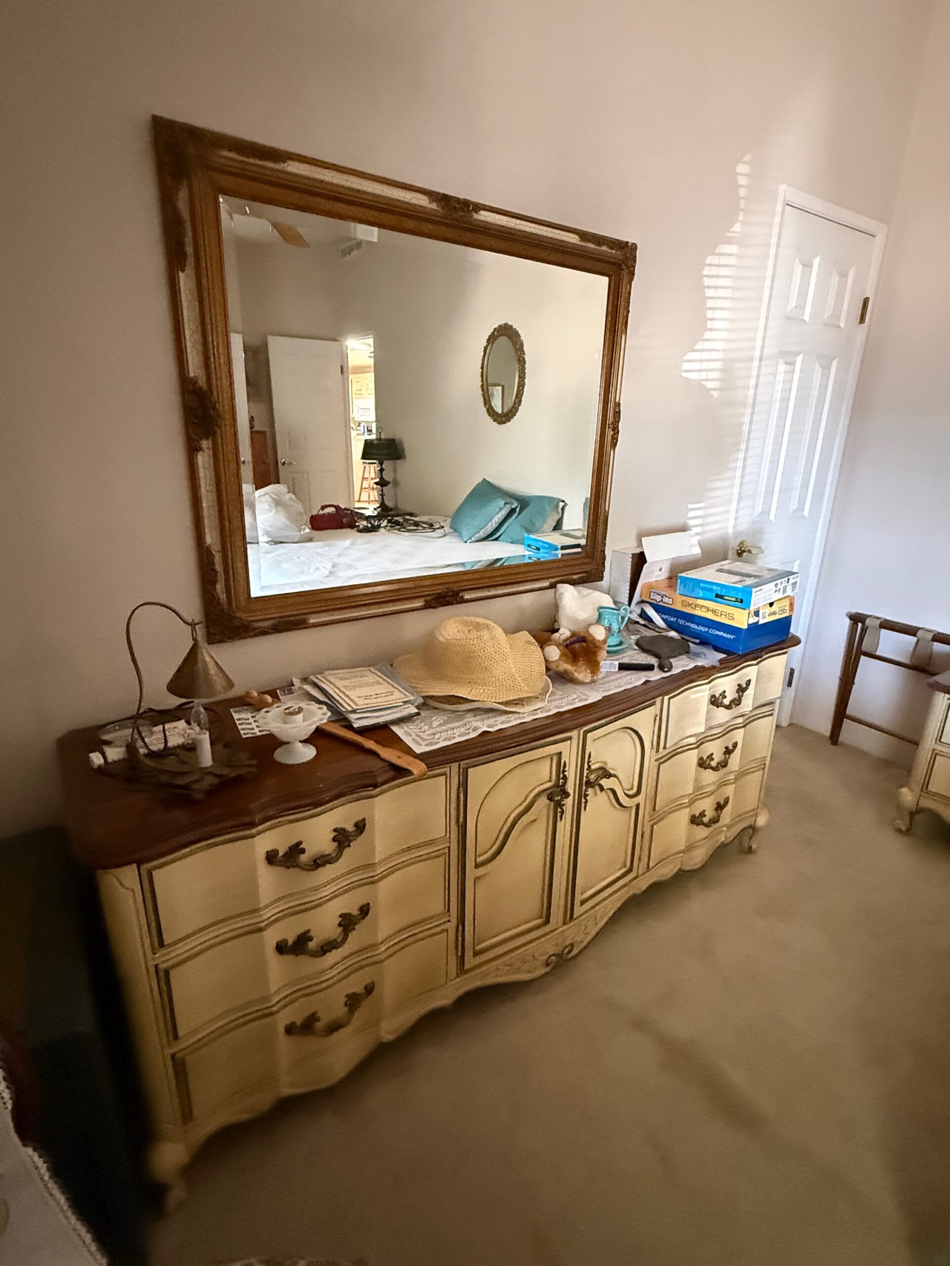 PARTIAL LIST: EZ GO golf cart, marble top antique side table, hurricane lamp, household & bedroom furniture, vintage silver brush & hand mirror, Honeywell safe, hand & power tools, craftsman toolbox and chest, vice, hardware caddies, work table, kitchen and bakeware, Magna lite pot, Bakers rack, tea/bar cart, TV trays, chest freezer, China set, vintage Queen Ann’s chair, vacuum cleaner, clothes, lamps, wall art, GE rotisserie oven, patio furniture, ladders, knives, desk, mantle clock, Bose speakers, dining room table w/ leaves and chairs, brass Dinner bell, yard decor, copper cowbell, vintage hand tools, Coca-Cola collector items, matchbox, cars, stuffed animals, cobalt blue bowl, patio heater, vintage suitcases, glassware, paper dolls, cameras, Cabbage Patch dolls, and Many More Items to Auction…
