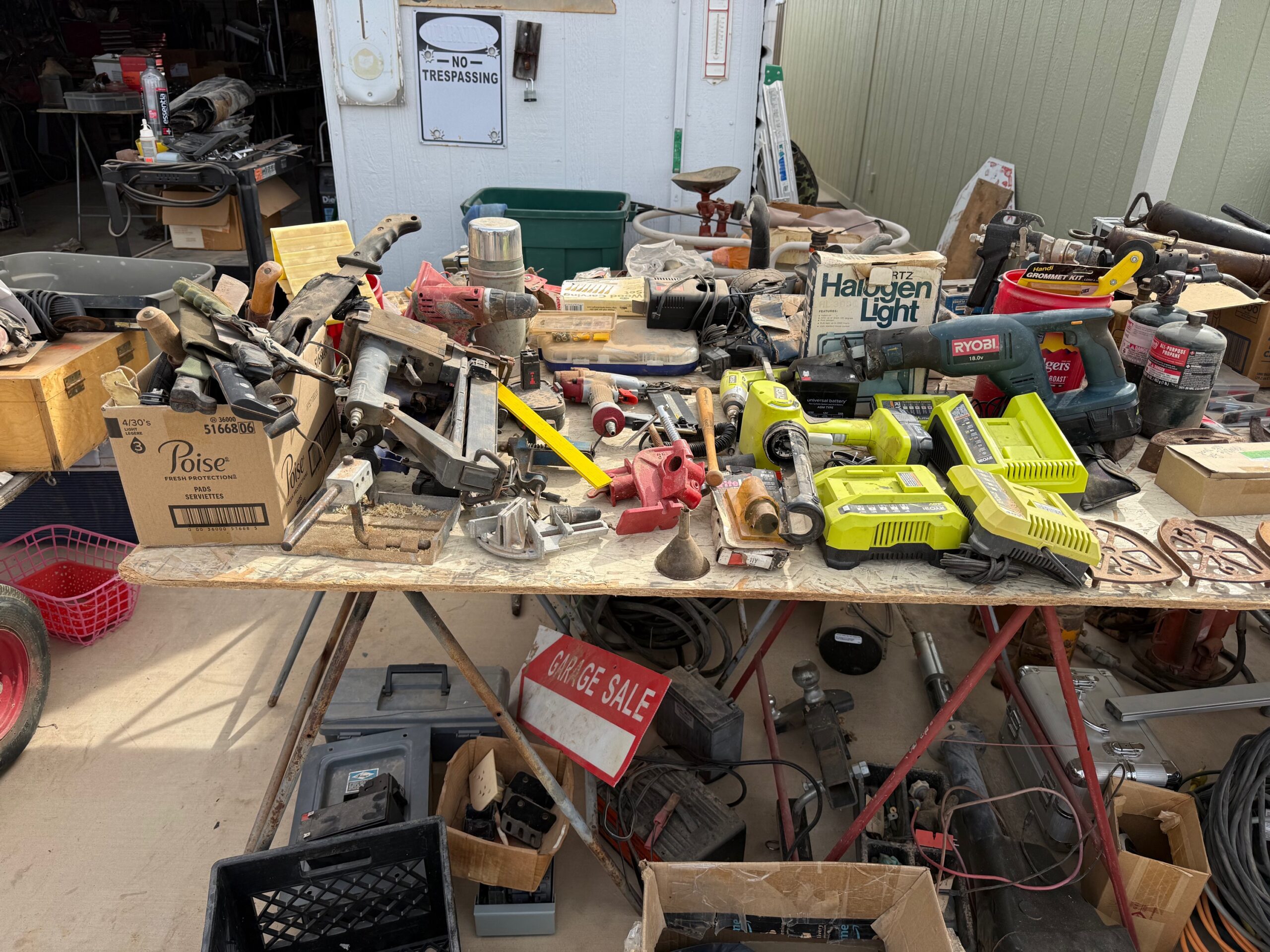 PARTIAL LIST: Guns: Remington 870 Express Magnum 12 ga. pump, Winchester Model 1912 12 ga. pump, Taurus Judge pistol, 28’ Enclosed trailer, 2006 Rotax High Output 400 Can-am, 8’x10’ green box trailer, tandem axle 20’ car hauler, 9’ & 15’ utility trailers, 20’ Connex container, 8’ truck bed enclosed trailer, 7’x10’ metal shed, ammo, plasma cutter, welders, Acetylene torch sets, Firman dual fuel & other generators, power & hand tools, vintage metal signs, quilting & sewing supplies, bolt bins, hardware caddies, Tonka & diecast cars, trucks & tractors, 4 vintage peddle tractors, collectible John Deere items, yard decorations, collectible cabbage slicers, engine hoist, crocks, BBQ, smoker, collectible glassware, antique tractor & metal spoke wheels, 2 tractor seat milk cans, fishing poles, furniture, 2 wooden Ford benches, 1800’s large anvil, lawn mower, glass collectible water jugs, Mexican bricks, galvanized wash tubs, tool boxes & chests, vintage wine cooler box, battery chargers, come-alongs, rock tumblers, meat slicer, yard tools, jewelry, knives, straight razors, chicken coops, liquid farm tanks, ramps, small appliances, Coleman lanterns & propane stoves, saw horses, shop vac, ladders, iron sprinkler tractors, keyboard & stand, household décor, small cast iron potbelly stove, baker’s rack, TV, rocking horse, antique cream separator, windmill, well hand pump, gas pressure washer, compressor, Truck Vault, railroad cart, yard trailer, metal storage racks, Novelty 8’ metal Ferris wheel, composter, cowboy grill, crosscut & bow saws, cake decorating items, tow chains, clocks and Many More Items to Auction…