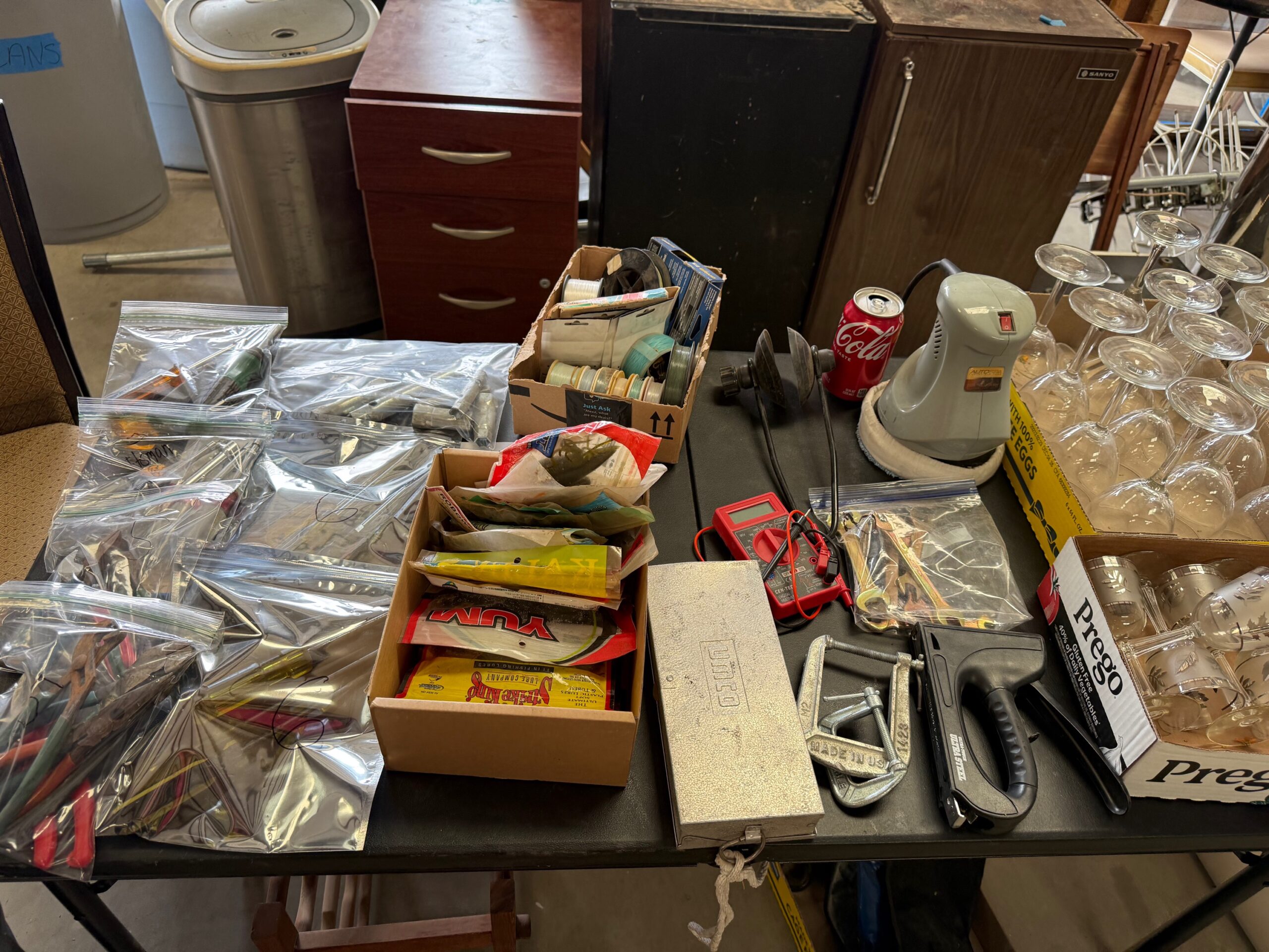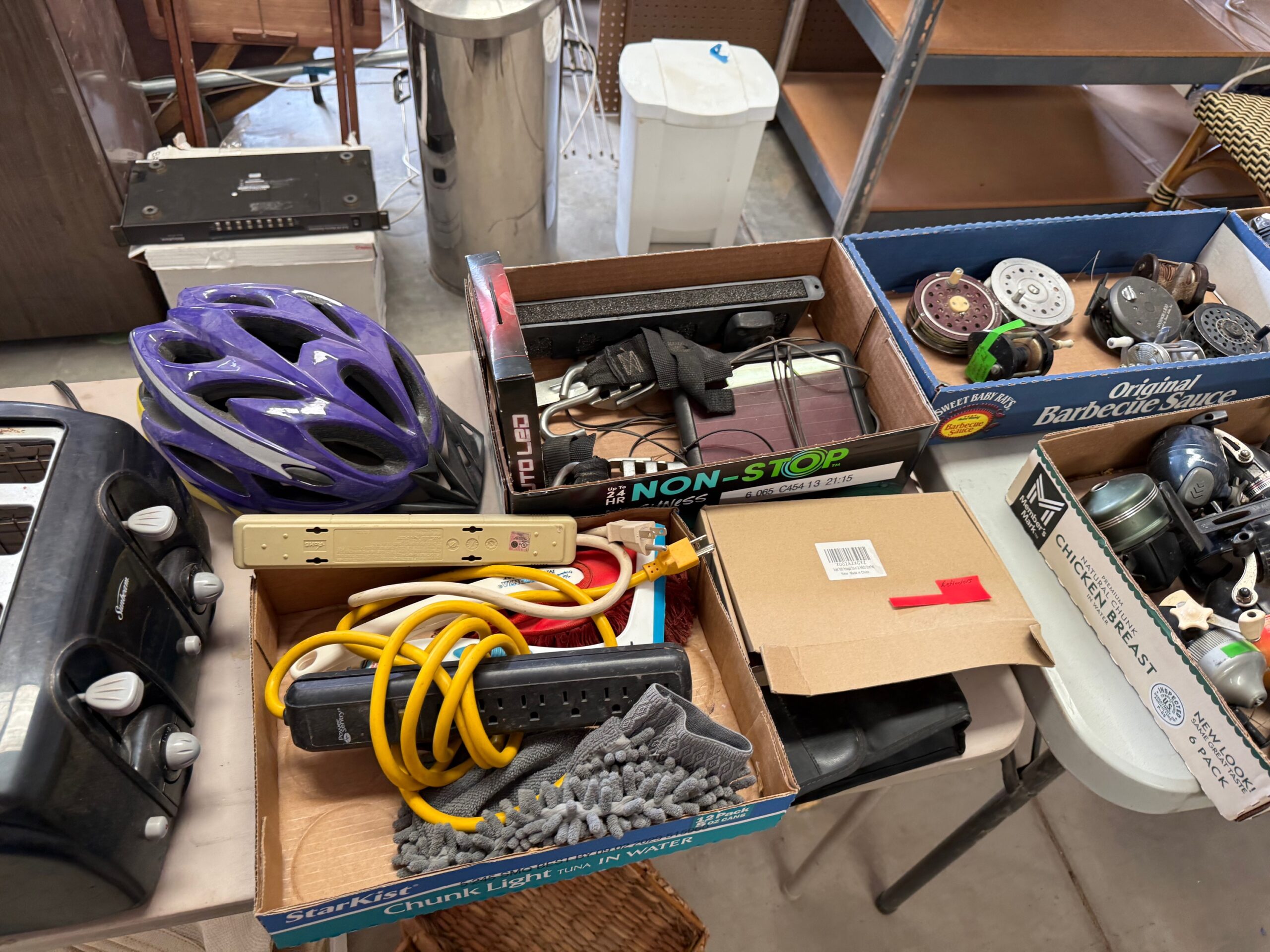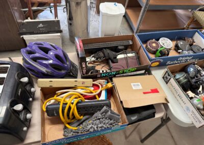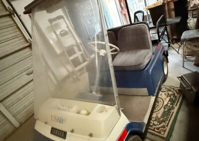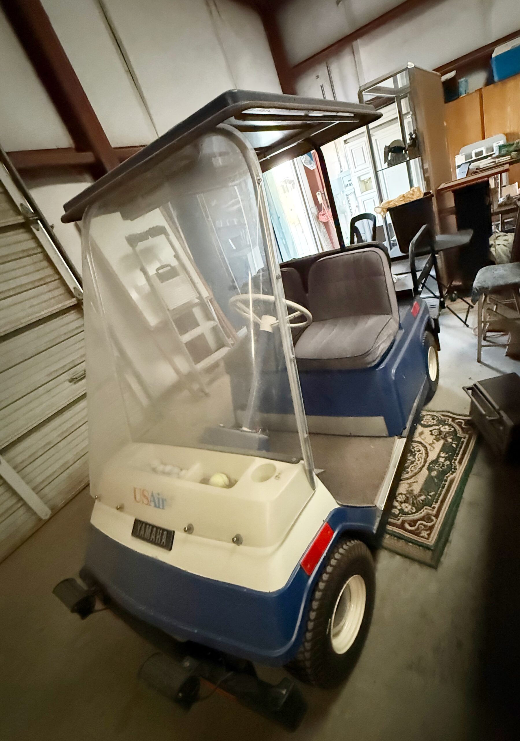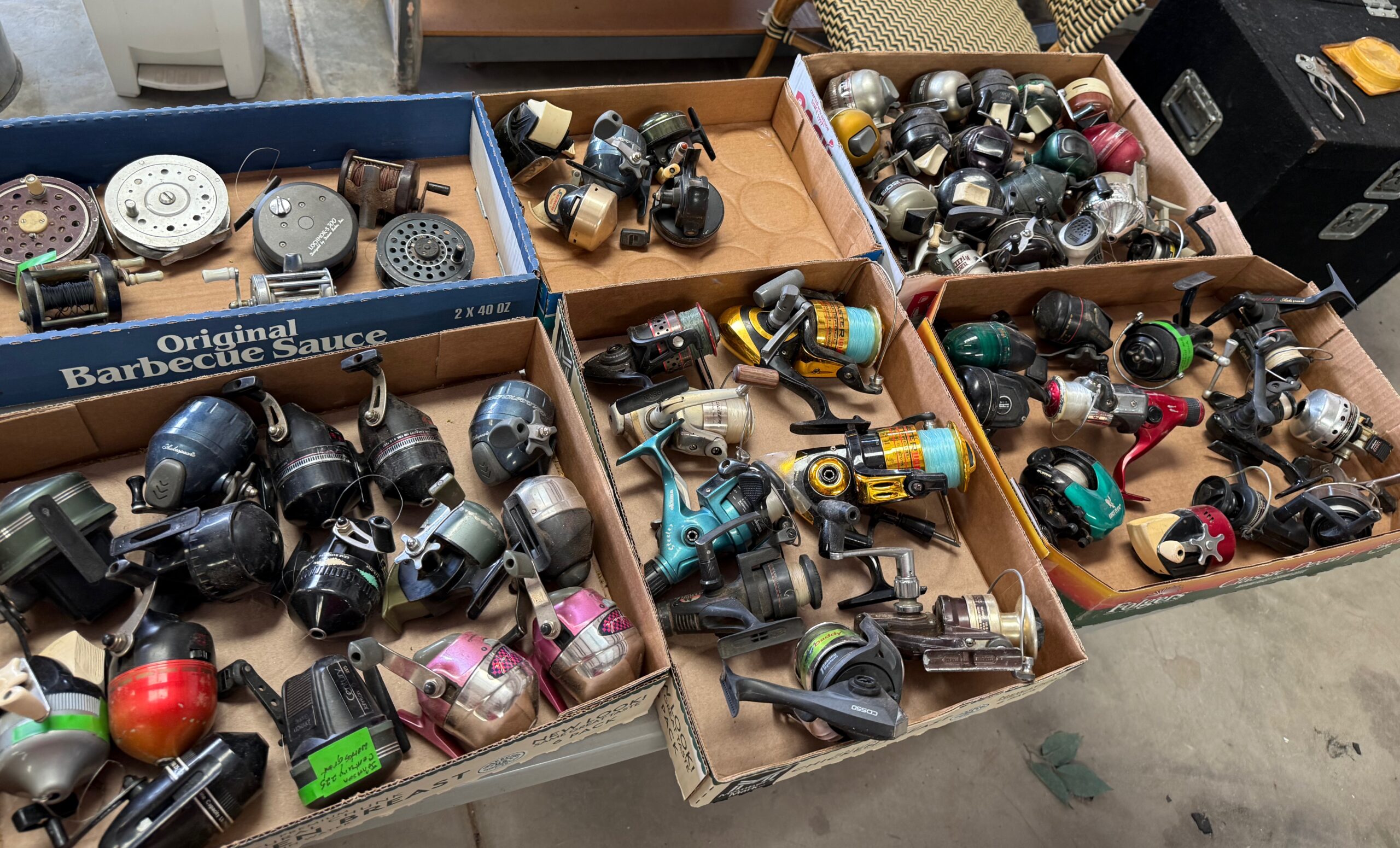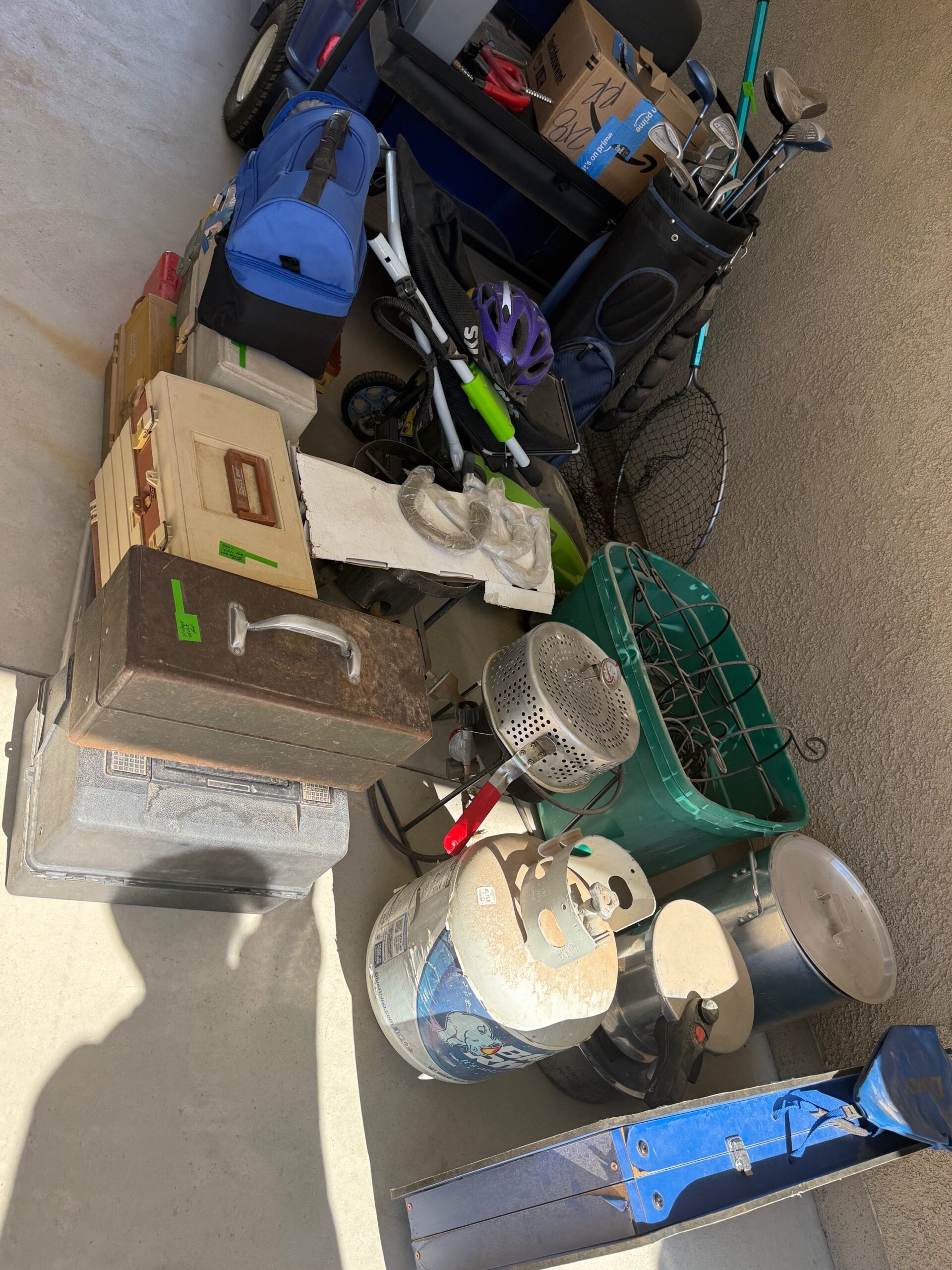 PARTIAL LIST: US Air Golf Cart, extensive collection of rods, reels, lures & tackle, Vintage Bamboo fly rod & lures, 1750’s rod & reel, Celestron LCM Newtonian series telescope, TV’s, Boris Vallejo Rightstone Fantasy Knife collection, ball pit trampoline, Little Tykes slide, 2 Pack n’ Plays, adjustable table, small kitchen appliances, desk, wall décor & pictures, silk plants, 5 tier shelf, projector, dining room table & 4 chairs, dishware, bakeware, kitchenware, air fryer, household furniture, wire storage racks, GE frontload dryer, Samsung top load washing machine, rugs, office supplies, desk, Sentinel gun safe, Sentinel lock box, treadmill, W. Jameson guitar, storage ottoman, Stanley wet dry vac 8 gallon, picnic table, Adirondack chairs, Sunjoe pressure washer, planters, cornhole boards, hand & power tools, Teande 4200 PSI pressure washer, Olympia tools work bench w/ light, Huffy & Schwinn bikes, metal detector, air compressor, wheel barrow, shade cloth, chest waders, leg weights, collapsable wagon, knickknacks, cannister set, refrigerator, turkey fryer, propane tank, baby gate, tool chests, yard décor, hammock, storage bins, ladder, floor fans, camp chair, and Many More Items to Auction