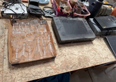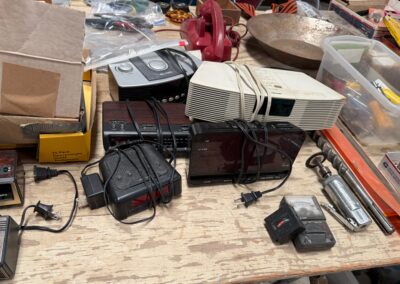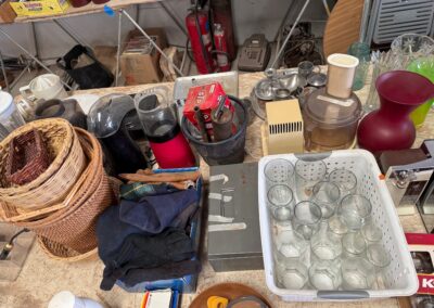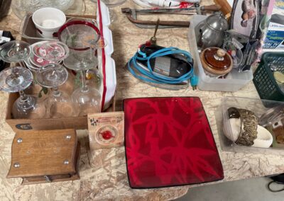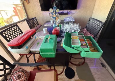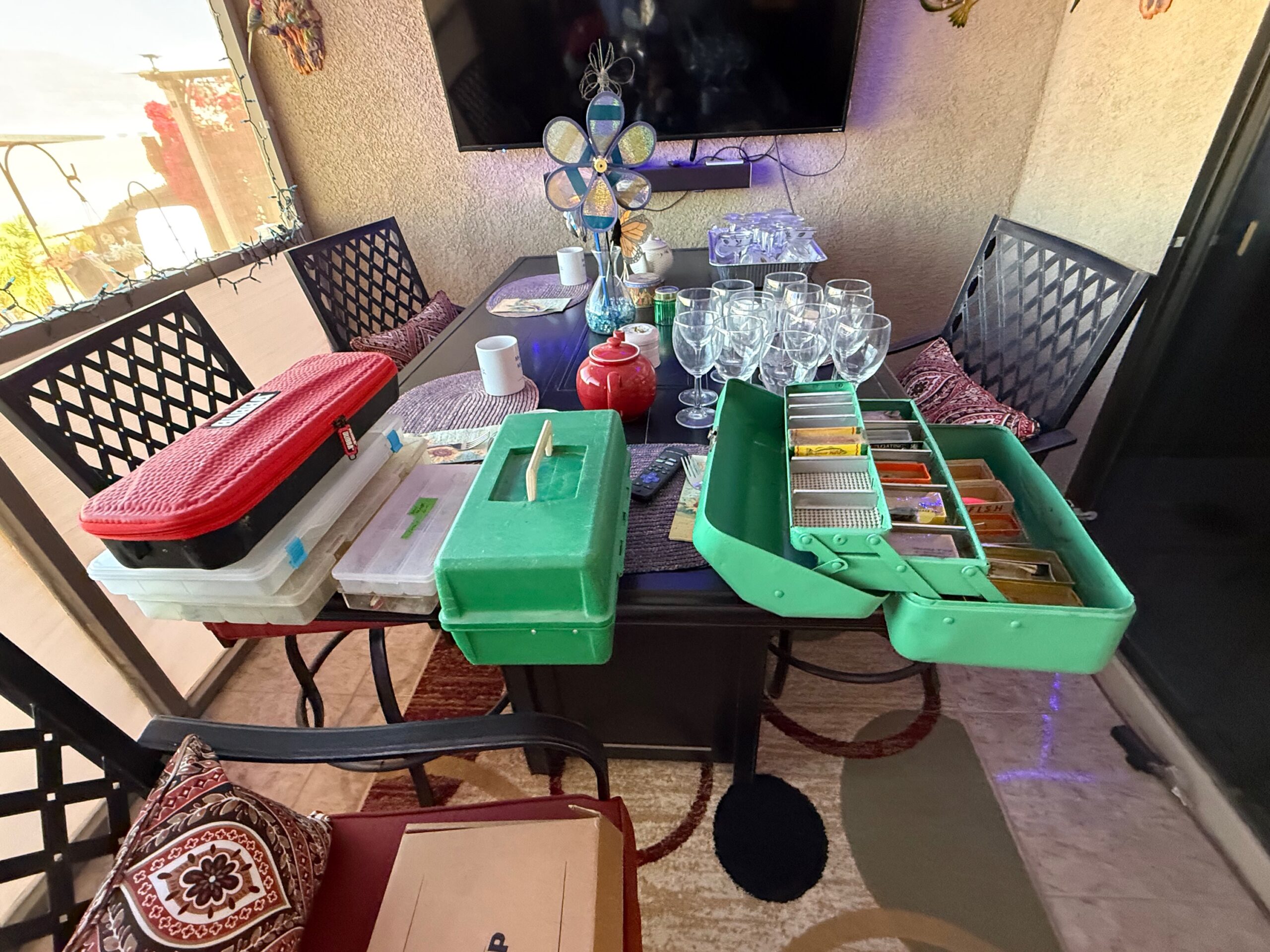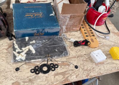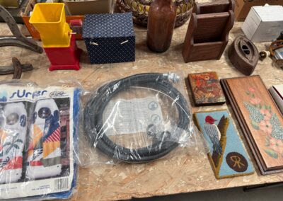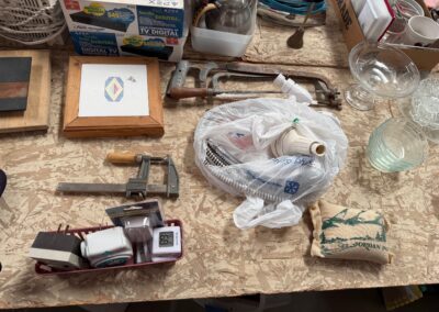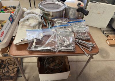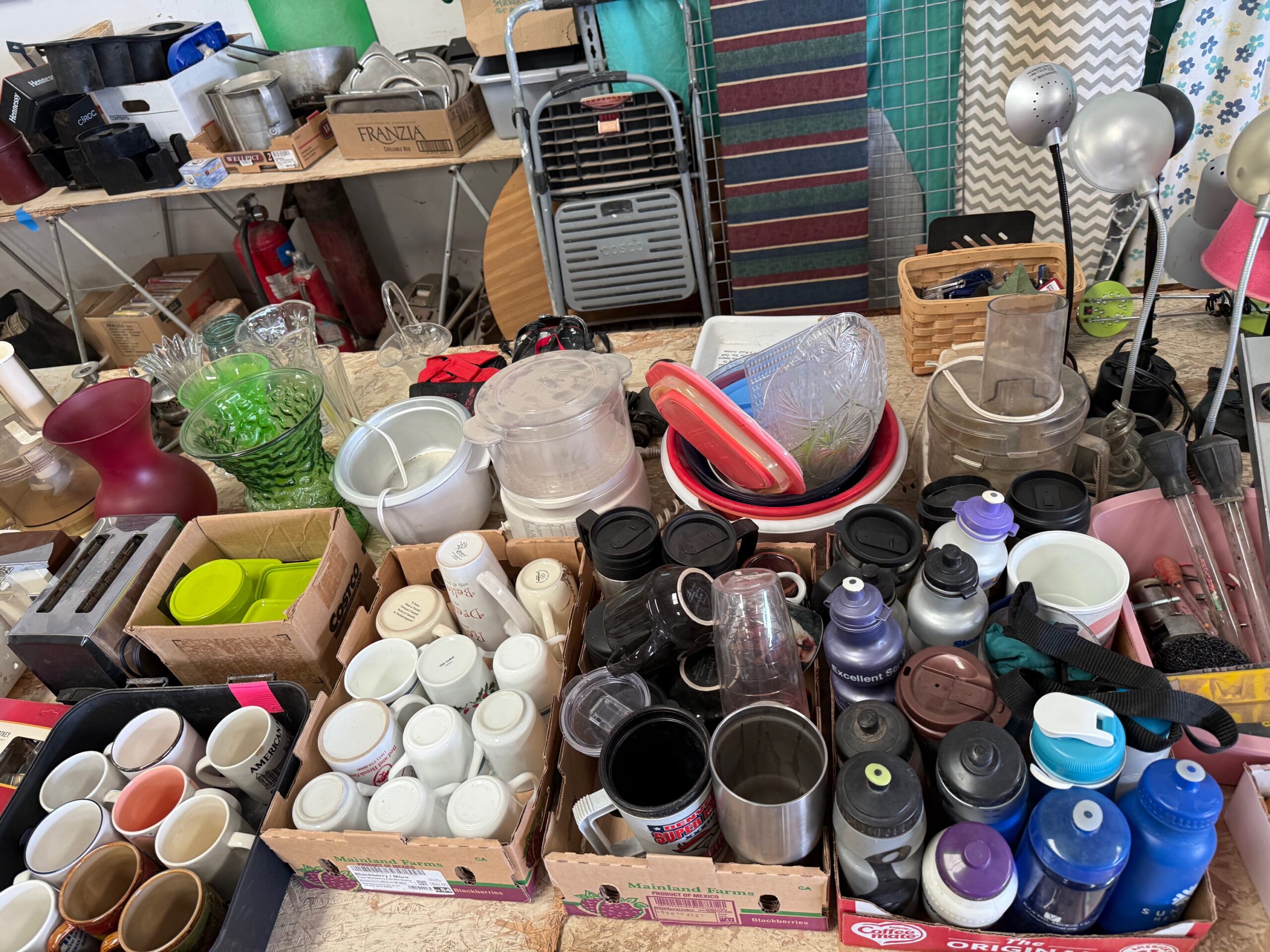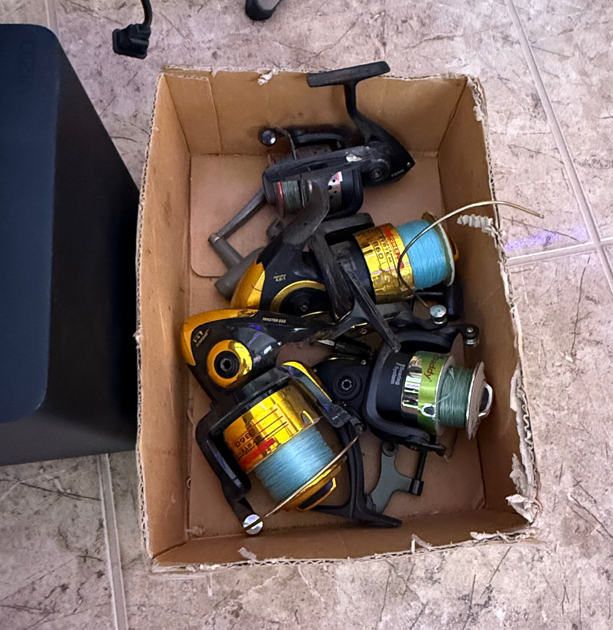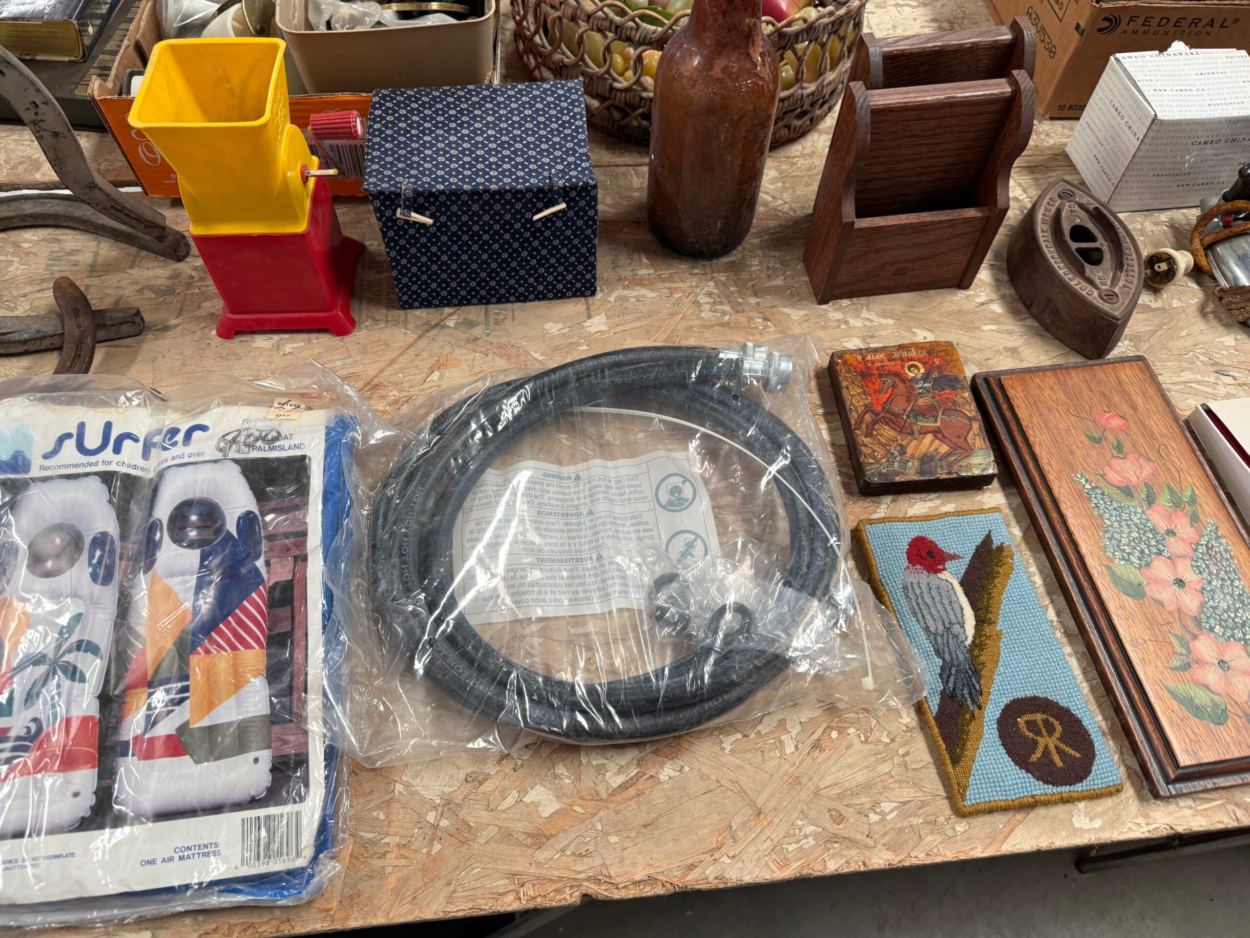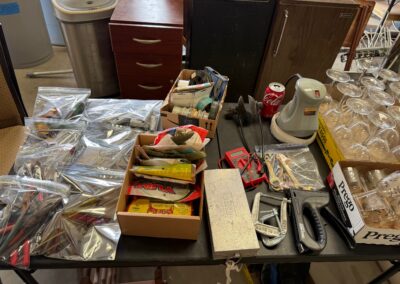PARTIAL LIST: US Air Golf Cart, extensive collection of rods, reels, lures & tackle, Vintage Bamboo fly rod & lures, 1750’s rod & reel, Celestron LCM Newtonian series telescope, TV’s, Boris Vallejo Rightstone Fantasy Knife collection, ball pit trampoline, Little Tykes slide, 2 Pack n’ Plays, adjustable table, small kitchen appliances, desk, wall décor & pictures, silk plants, 5 tier shelf, projector, dining room table & 4 chairs, dishware, bakeware, kitchenware, air fryer, household furniture, wire storage racks, GE frontload dryer, Samsung top load washing machine, rugs, office supplies, desk, Sentinel gun safe, Sentinel lock box, treadmill, W. Jameson guitar, storage ottoman, Stanley wet dry vac 8 gallon, picnic table, Adirondack chairs, Sunjoe pressure washer, planters, cornhole boards, hand & power tools, Teande 4200 PSI pressure washer, Olympia tools work bench w/ light, Huffy & Schwinn bikes, metal detector, air compressor, wheel barrow, shade cloth, chest waders, leg weights, collapsable wagon, knickknacks, cannister set, refrigerator, turkey fryer, propane tank, baby gate, tool chests, yard décor, hammock, storage bins, ladder, floor fans, camp chair, and Many More Items to Auction