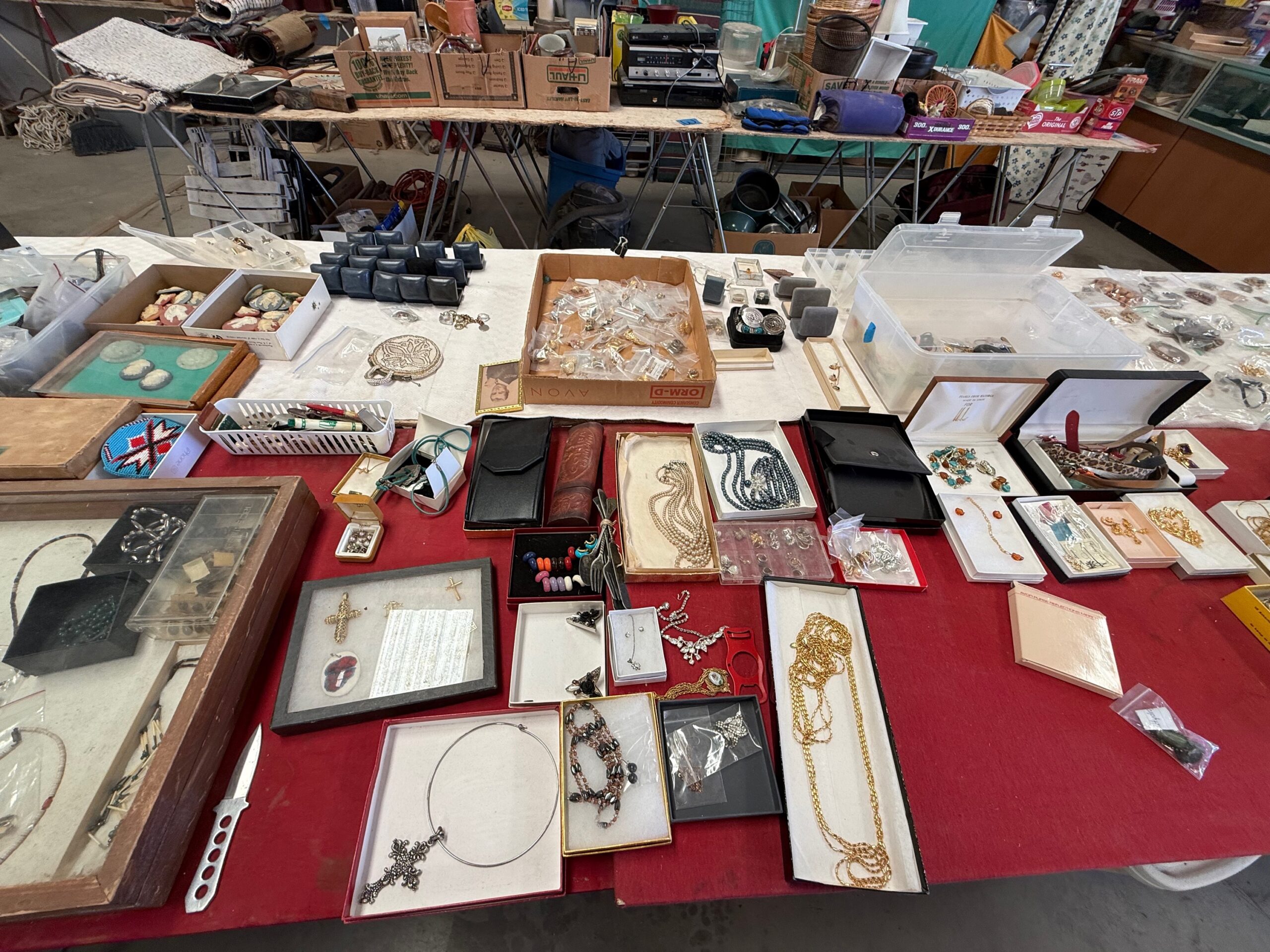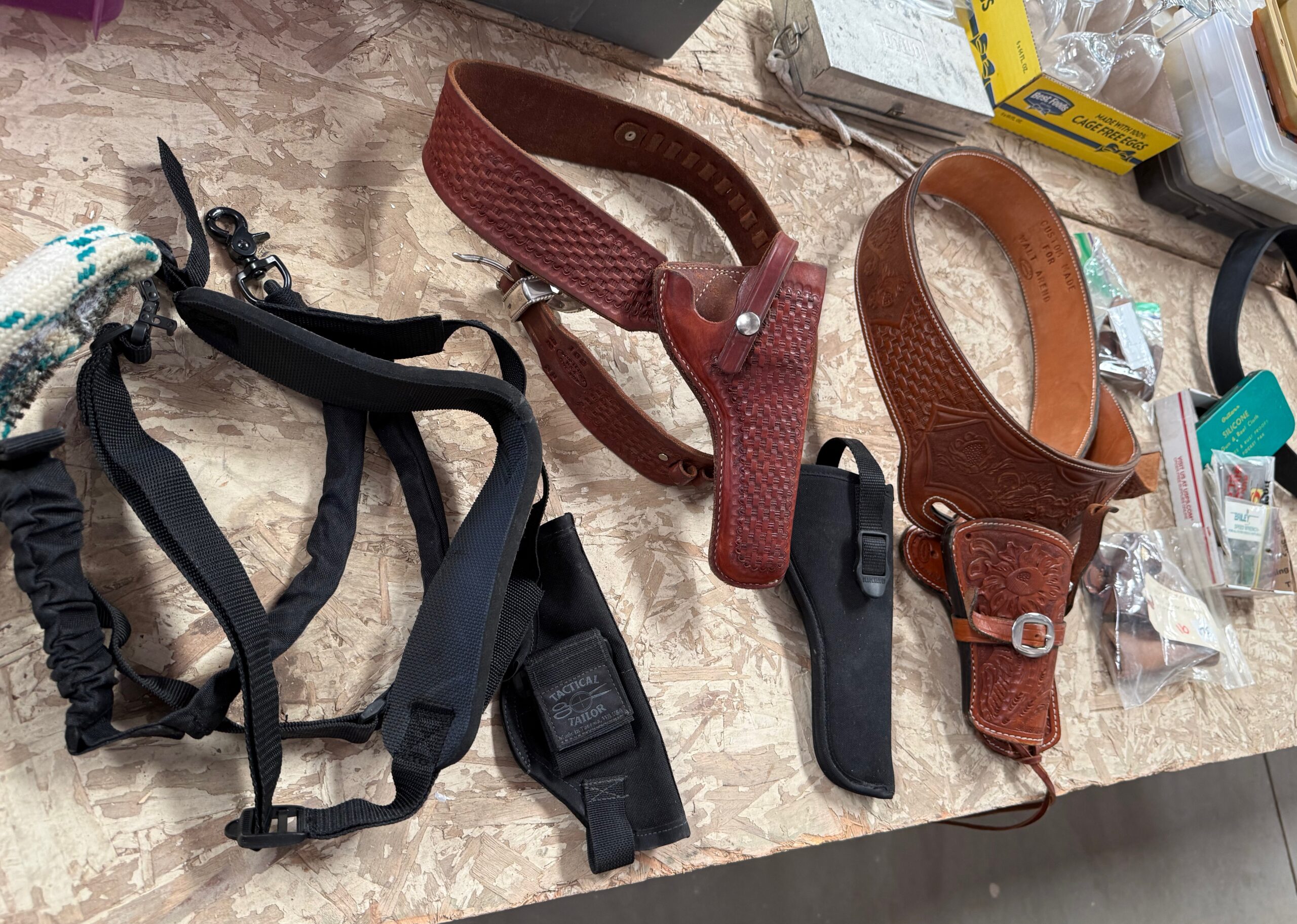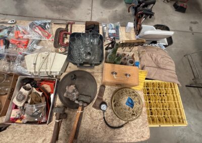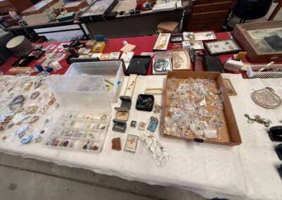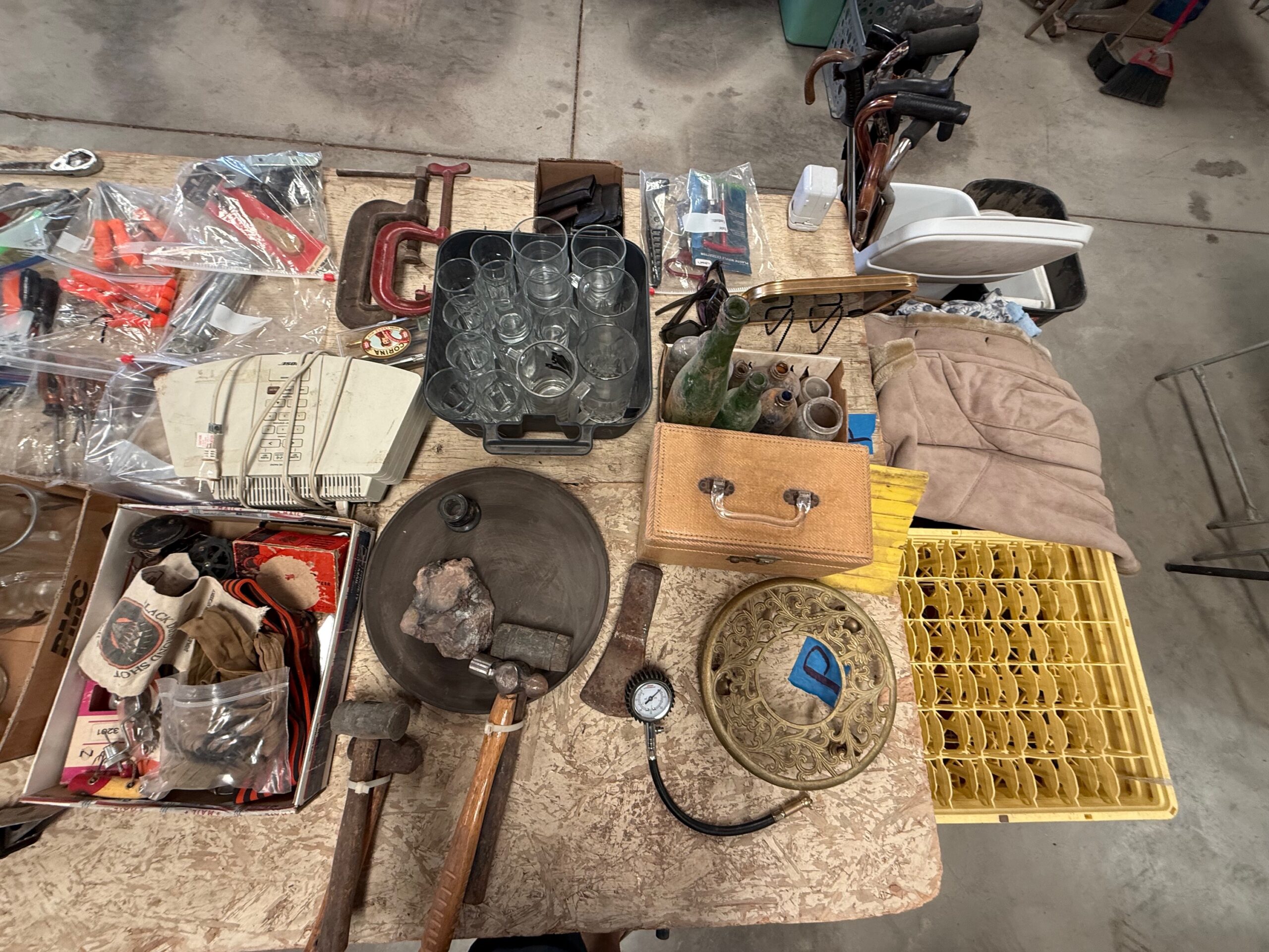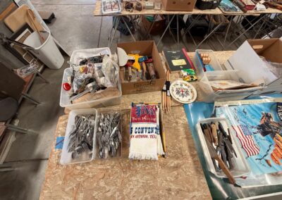 PARTIAL LIST: Guns, collectible coins, silver, Turquoise & fashion jewelry, leather gun holster and belt, gun books, Marine Military items, hurricane lanterns, folding tables, glass tops, die cast cars, canes & walkers, DVD’s, clothing, collectible glassware, hand and power tools, kitchen items, reloading items, professional Karaoke machine, cases of restaurant glassware, deep fryer, steam kettle, Bar mirror, peg board w/ hooks, heavy duty shelves, collectible cars, stuffed animals, books, wall décor & pictures, knives and Many More Items to Auction…