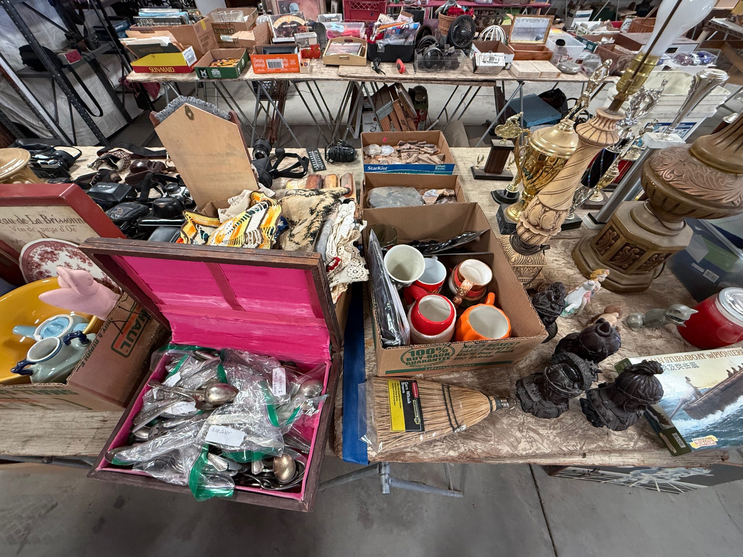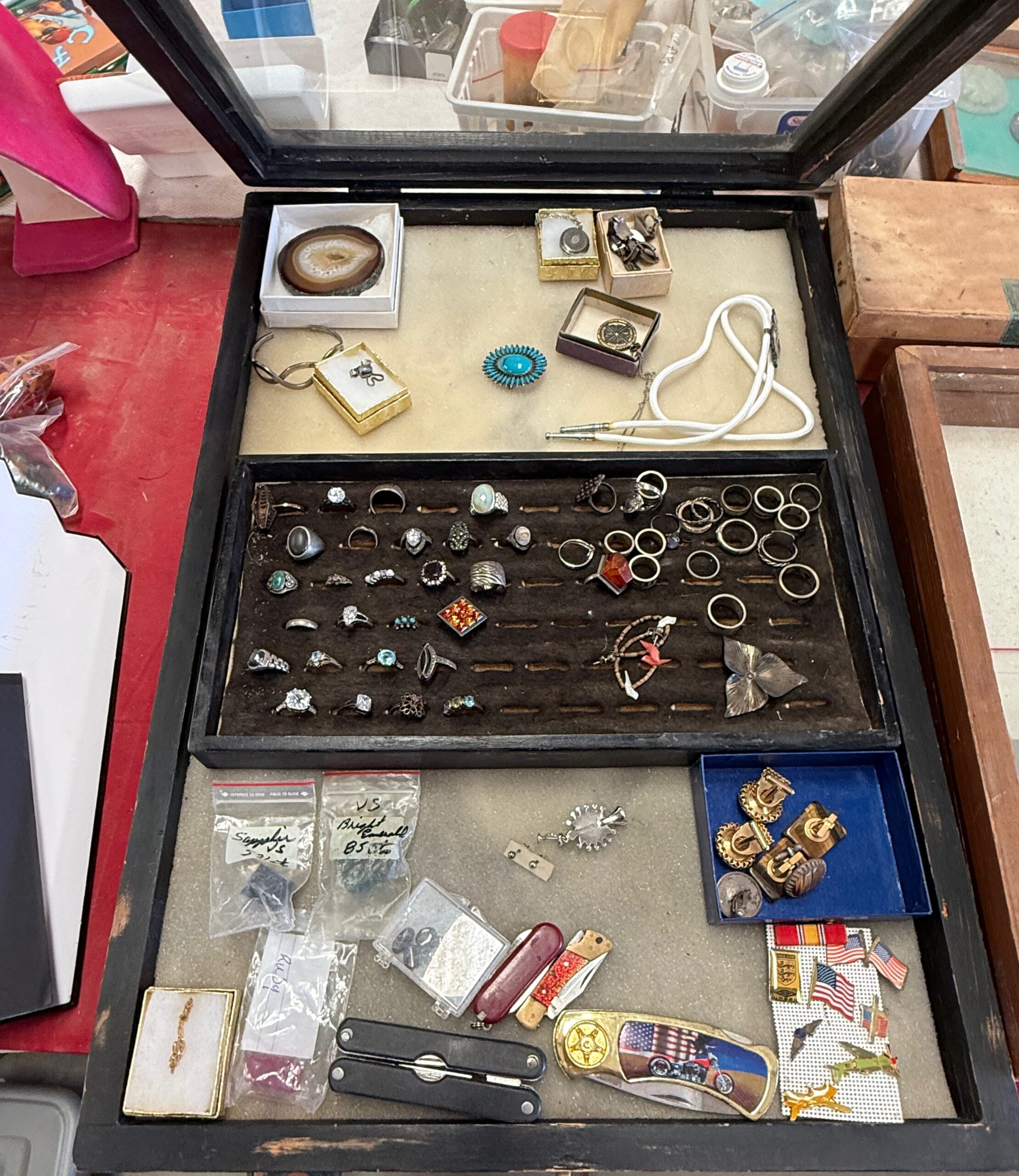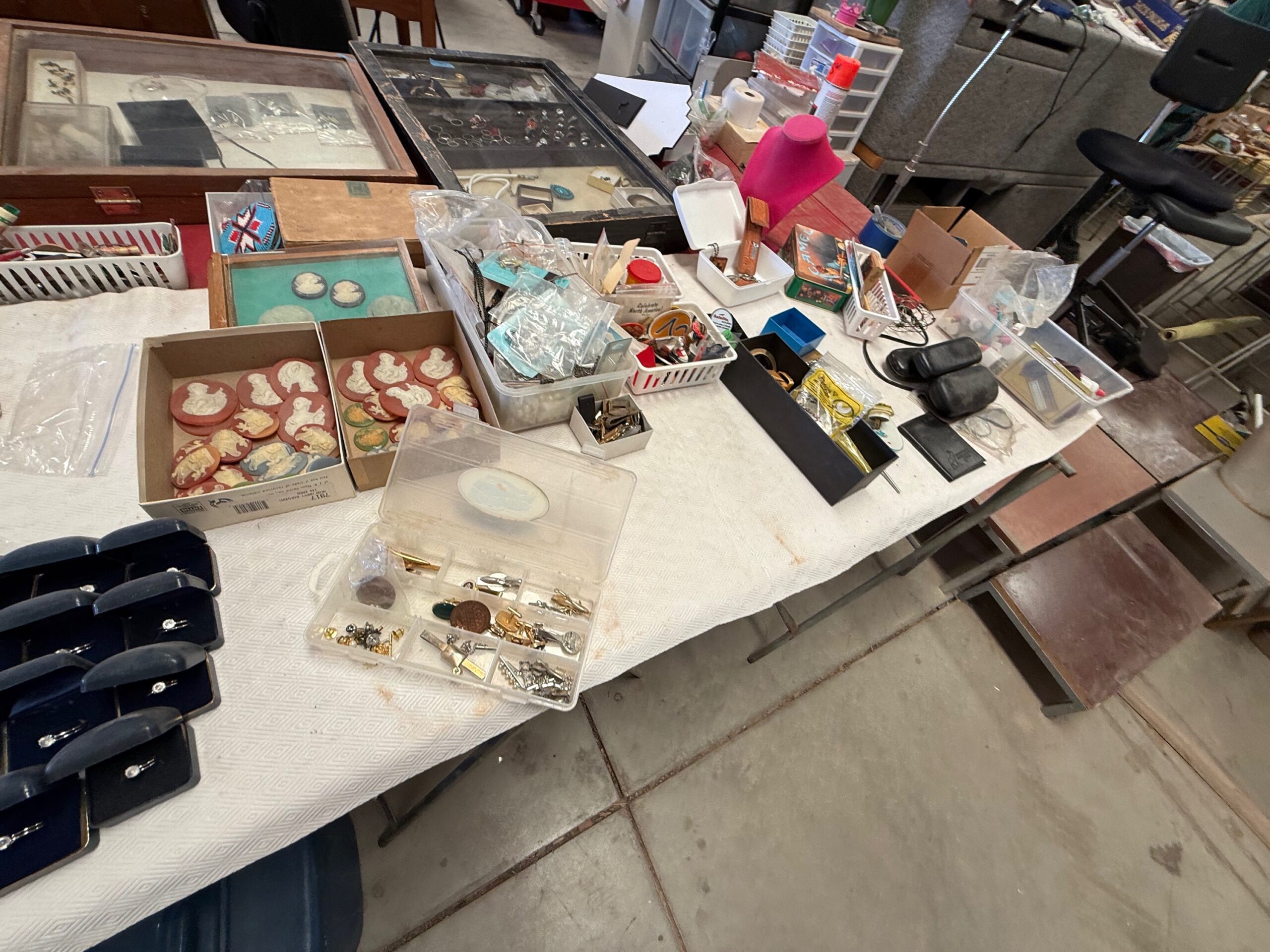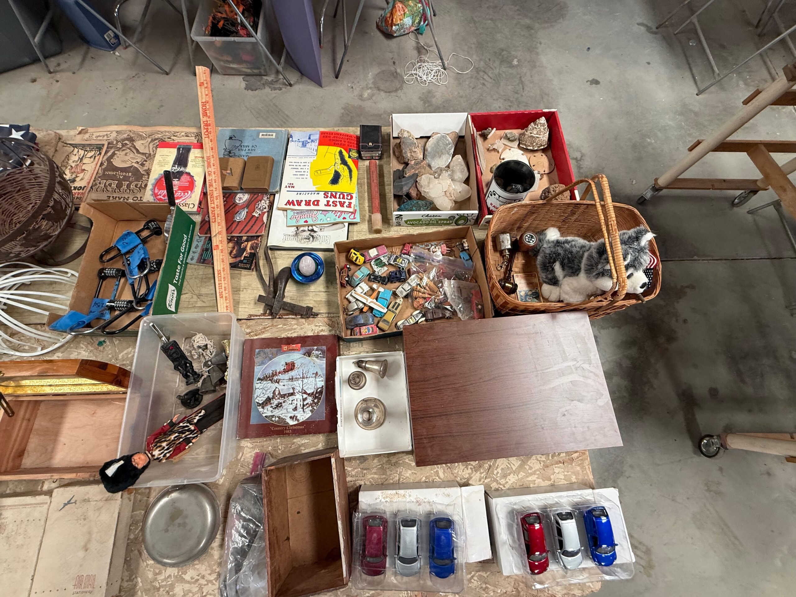 PARTIAL LIST: Guns, collectible coins, silver, Turquoise & fashion jewelry, leather gun holster and belt, gun books, Marine Military items, hurricane lanterns, folding tables, glass tops, die cast cars, canes & walkers, DVD’s, clothing, collectible glassware, hand and power tools, kitchen items, reloading items, professional Karaoke machine, cases of restaurant glassware, deep fryer, steam kettle, Bar mirror, peg board w/ hooks, heavy duty shelves, collectible cars, stuffed animals, books, wall décor & pictures, knives and Many More Items to Auction…